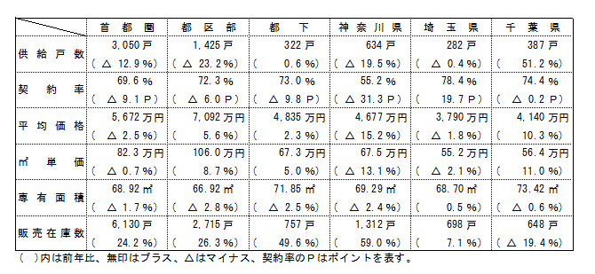 6月のマンション市場動向・6月の首都圏・新築発売、価格が下落